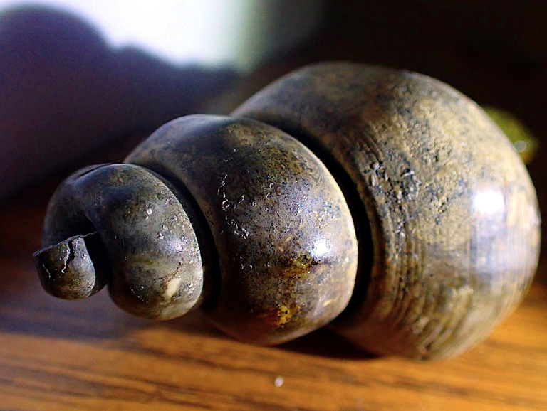Using Google Lens I have identified this fossil as a cyclonema, belonging to the gastropod family. I found it as I recall on a beach in San Mateo County, CA in the 90s.